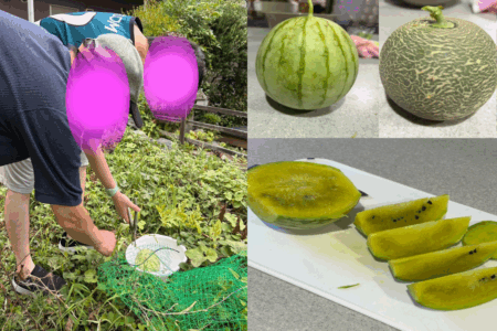 すいか🍉とメロン🍈取れたよ!! ちょっと小さい?? みんなで食べるよ